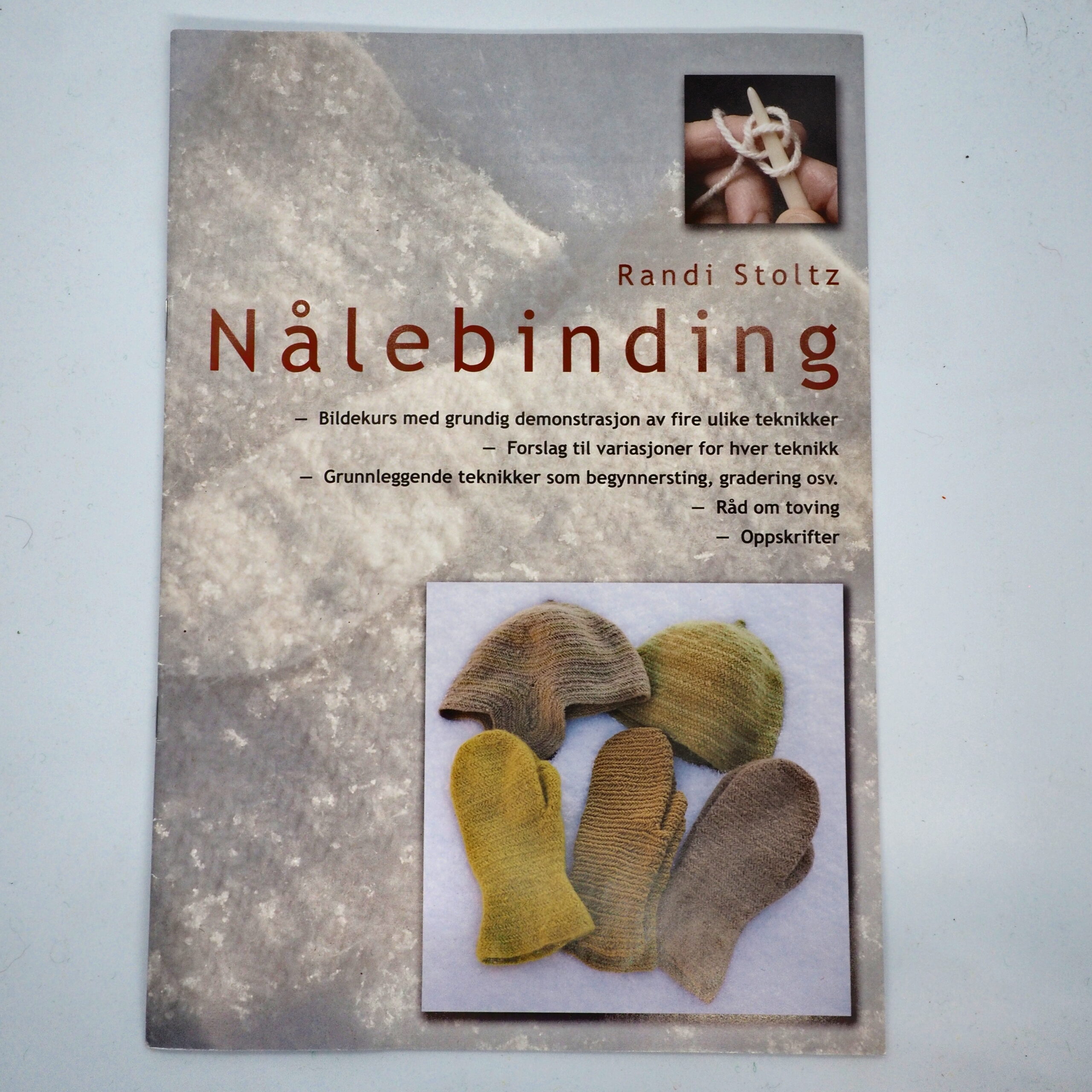 Dette hefte inneholder grunnleggende nålebindingsteknikker som nybegynnersting og graderinger. Bilder med grundig demonstrasjon av fire ulike teknikker, forslag for variasjon for hver teknikk, oppskrifter og råd om toving.